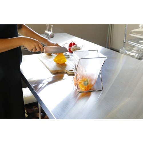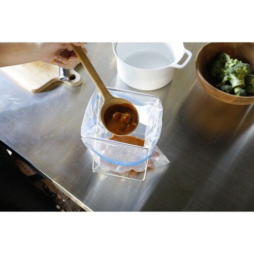 開閉できるステンレス製ポリ袋スタンドです。 保存袋を掛けて食材の移し替えもスムーズにできます。 キッチンで布巾掛けとしても使用できます。 コンパクトに畳めるのでアウトドアの際も持ち運びがラクです。 |