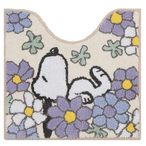 スヌーピー 花いっぱい トイレマット 約58×60cm ブルー ※2個以上から注文可能(販売価格は1個単位の価格)