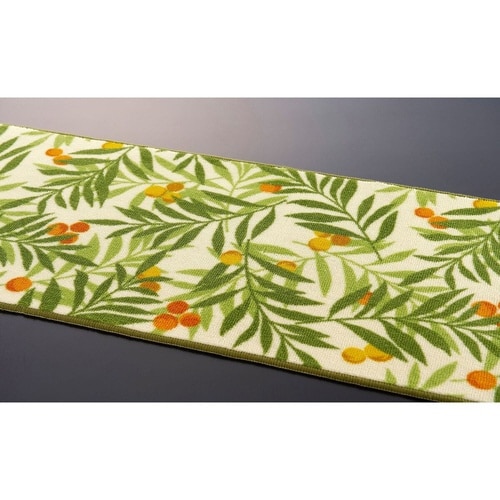 ボタニカル&ゴージャスなキッチンマット180cmです。 表面は毛足が短く、フラットで歩きやすいです。 裏面は滑り止め加工がされており、マットが滑りにくいです。 |