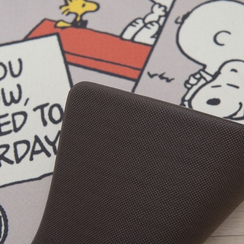 拭くだけでお手入れできるスヌーピーのロングマット120cmです。 水や汚れを弾くPVC素材なので、汚れがたまりにくく清潔に保ちやすいです。 裏面は滑り止め加工がされており、マットが滑りにくいです。 |