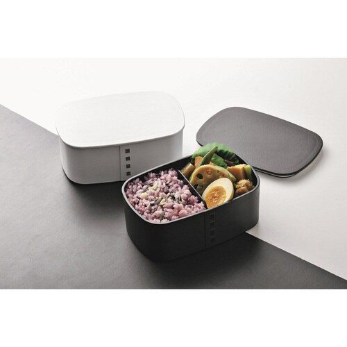 まるで木製曲げわっぱのような見た目と質感のお弁当箱です。 スタイリッシュな印象のモノトーンカラーに飽きのこないシンプルなデザインです。 食洗機対応で毎日のお手入れも簡単です。 |