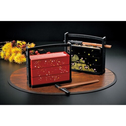 お弁当箱 3段 600ml さくら 野点弁当 HAKOYA 赤 ※2個以上から注文可能(販売価格は1個単位の価格)