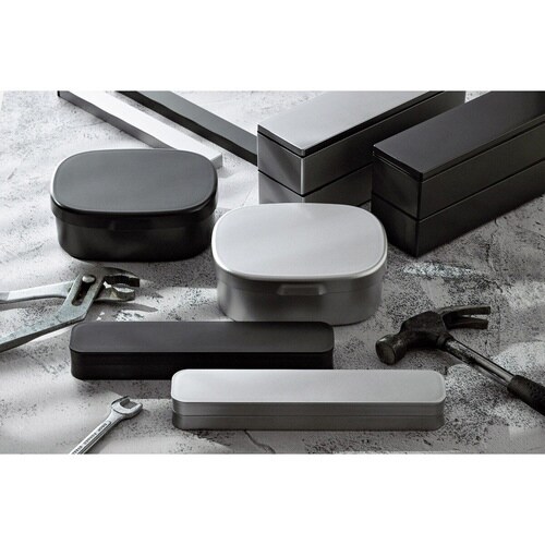 シンプルなデザインのお弁当箱で、ブラックとシルバーの2色展開です。 小食な方にもぴったりな600mlサイズの1段お弁当箱なので盛り付けも簡単です。 |