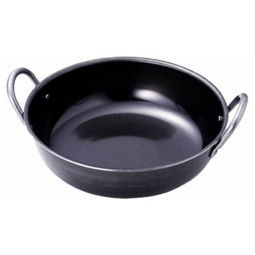厚手(2mm)の鋼板を使用しているため、油の温度が一定に保たれ、おいしい揚げ物ができます。 使用前に空焼き(鍋表面の錆止め塗料を除去すること)が必要です。 |
