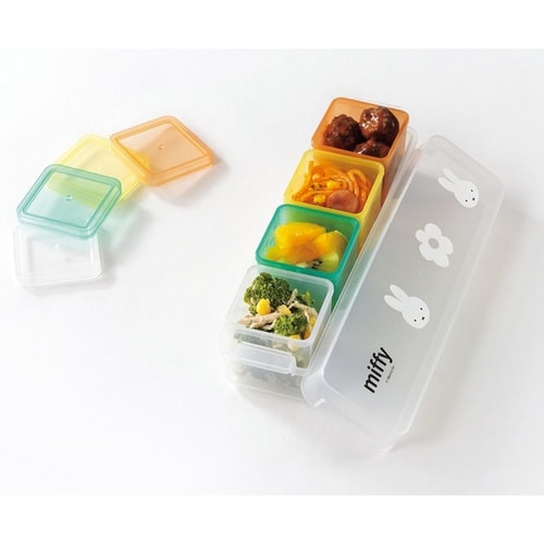 作り置きに便利なミッフィーの小分け容器です。 収納に便利な外ケース付きです。 フタを取ってそのまま電子レンジで温められます。 |