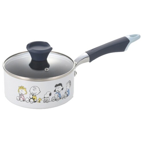 淡いリネンを想わせるような色合いの「ブレイクタイムシリーズ」の16cmの片手鍋です。 かわいいスヌーピーとPEANUTSに出てくるキャラクターが描かれています。 |