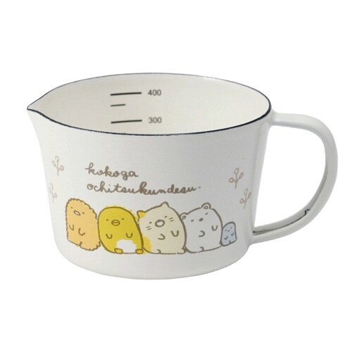 すみっコぐらしのほっこり可愛いホーロー製の計量カップです。 ホーローは、耐酸性・耐熱性に優れているので、お酢や合わせ調味料の計量などに便利です。 |