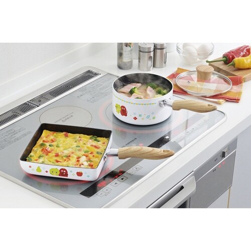 ガチャピン・ムックがとってもキュートな、四角いフライパンです。 四隅まで広く使えます。 四角いのでレトルト食品の温めにぴったりです。 こびりつきにくいフッ素加工が施されています。 |