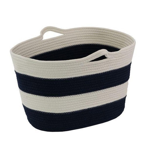 大きめの物を収納するのにぴったりの楕円形バスケットです。 バスケットにしては珍しいボーダー柄とツートン柄です。 やわらかい素材でありながら、しっかりと自立します。 肌触りの良いコットン100%です。 |