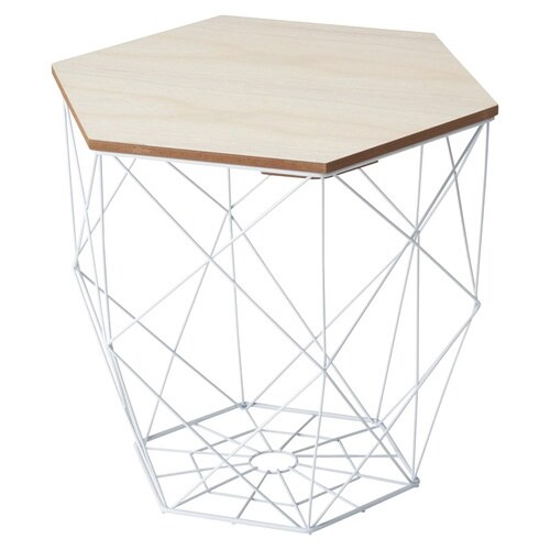 バスケット 六角テーブルバスケット ふた付き テーブル ホワイト