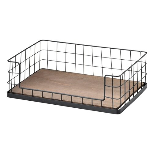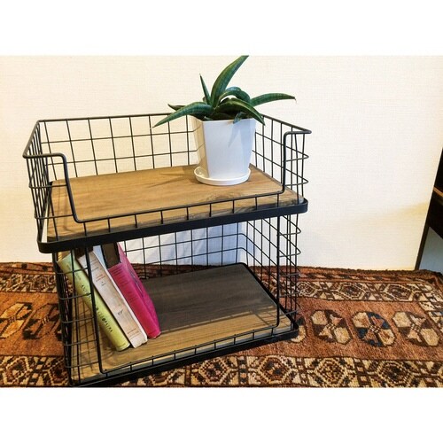 インダストリアルな雰囲気のワイヤーバスケットに、天然木を組み合わせたバスケットです。 幅広いテイストのお部屋に馴染みます。 浅型と深型をスタッキングすることが可能です。 |
