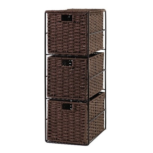 収納ボックス ペーパーバスケット かご 3段 ダークブラウン