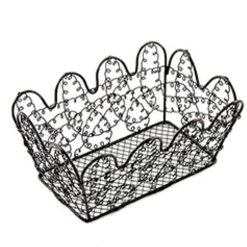 気分があがる姫系バスケット 角型中サイズです。 細いワイヤーを巻きつけたようなデザインで手作りの風合いを楽しめます。 バスケットごと袋に入れれば、プレゼントのラッピングとして使えます。 |