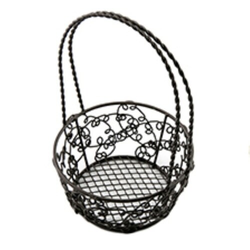 気分があがる姫系バスケット 丸型持ち手付きです。 細いワイヤーを巻きつけたようなデザインで手作りの風合いを楽しめます。 バスケットごと袋に入れれば、プレゼントのラッピングとして使えます。 |