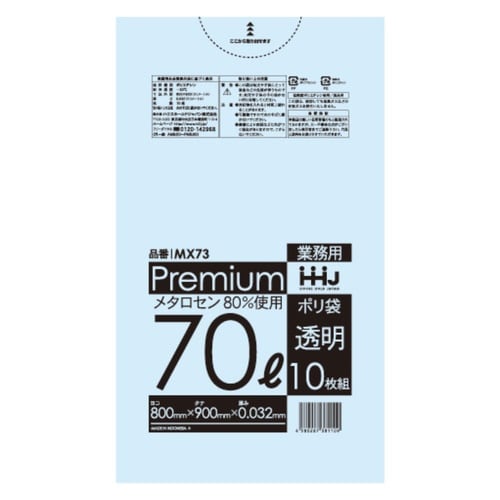 ゴミ袋 70L 90×80cm 厚さ0.032mm 10枚入 透明 MX73 ※8個以上から注文可能(販売価格は1個単位の価格)