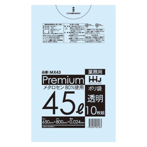 ゴミ袋 食品検査適合品 45L 80×65cm 厚さ0.024mm 10枚入 透明 MX43 ※14個以上から注文可能(販売価格は1個単位の価格)
