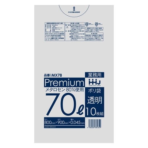 ゴミ袋 70L 90×80cm 厚さ0.045mm 10枚入 透明 MX78 ※6個以上から注文可能(販売価格は1個単位の価格)