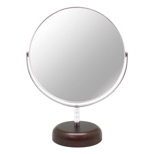 お顔の細かい部分までお手入れしたい方に便利な7倍率拡大鏡付きスタンドミラーです。 こちらはショートタイプです。 ミラーは360度回転させることができます。 |