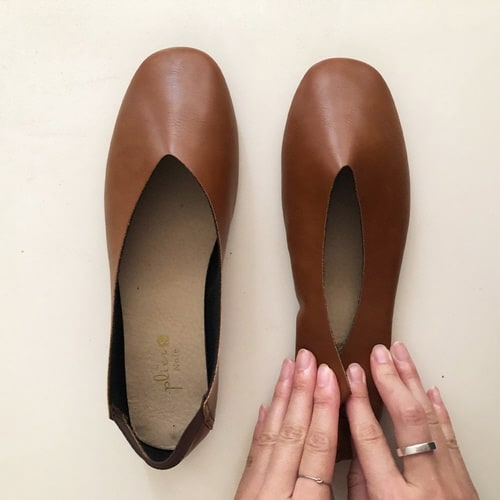 つま先部分は柔らかいカーブのスクエアトゥです。 指先を圧迫せず、長時間履いていても快適で足が痛くなりにくいです。 カジュアルでもフォーマルでも合わせやすいシンプルなデザインです。 |