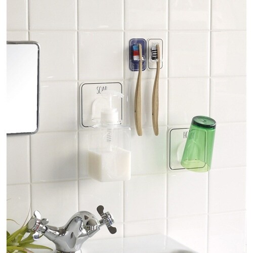 歯ブラシを浮かせて収納できるシートフックタイプの歯ブラシホルダーです。 水が溜まらず衛生的にお使いいただけます。 吸着するタイプなので、壁に穴を開けずにお使いいただけます。 |