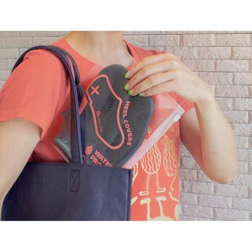急な雨や泥汚れが心配な時に靴を守ってくれる防水シューズカバーです。 ヒール靴やヒールタイプのショートブーツの上から被せられます。 伸縮性があり、靴や足首にピッタリフィットするのでスマートに使えます。 |