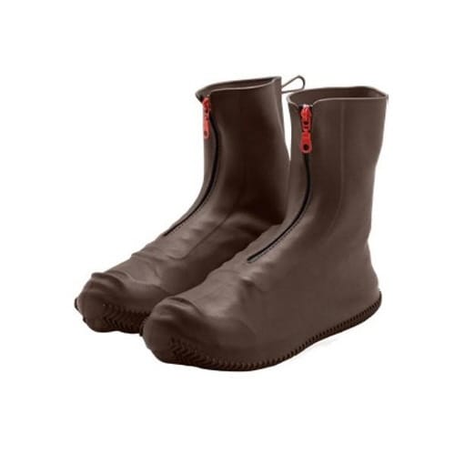 急な雨や泥汚れが心配な時に靴を守ってくれる防水シューズカバーです。 ファスナータイプになっているので履きやすいです。 ブーツ丈なので履き口からの雨の侵入を防ぎます。 |