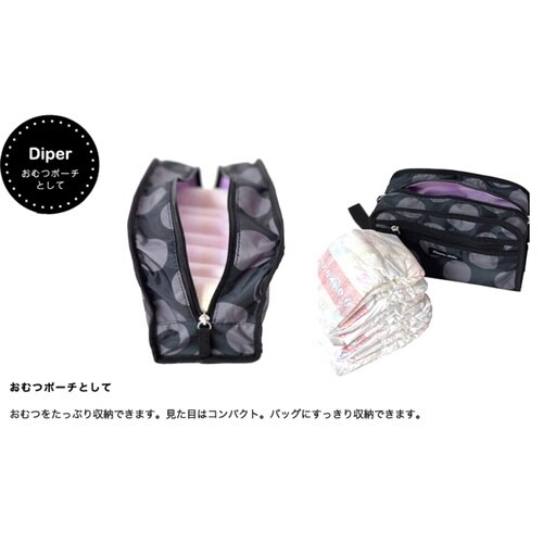 横から大きく開いて中身が見えやすい、たっぷり収納できるスクエアポーチです。 おむつポーチ、コスメポーチ、トラベルポーチなど様々な使い方ができ、細々とした小物をすっきり収納することができます。 |