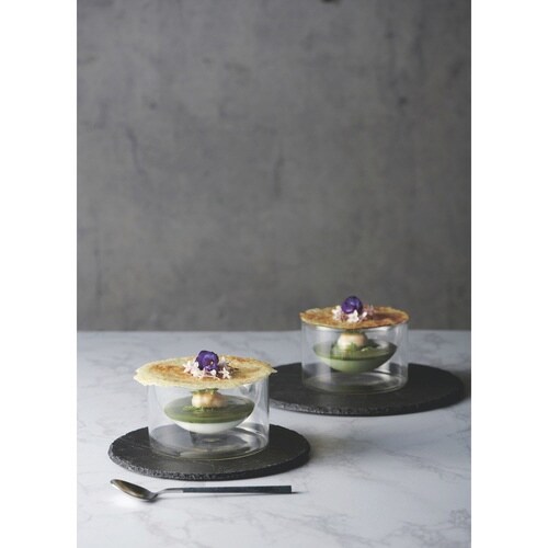 まるで宙に浮いているようで幻想的なダブルウォール構造のアミューズカップです。 冷菜やデザートにはもちろん、あたたかい前菜も爽やかにアレンジします。 |