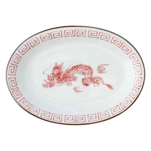餃子皿 19.5cm レトロ中華 磁器 赤 ※3個以上から注文可能(販売価格は1個単位の価格)