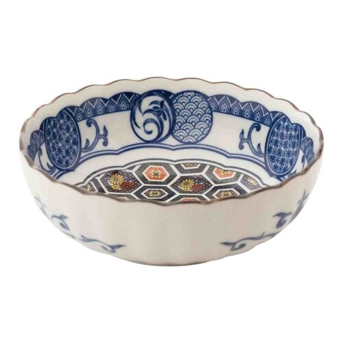 ちょこっと添える料理に最適な小鉢です。 直径約14cmで、一人分のサラダや副菜を盛り付けるのにぴったりなサイズ感です。 日本の伝統的な絵柄で彩った食器「藍染小紋」シリーズです。 |