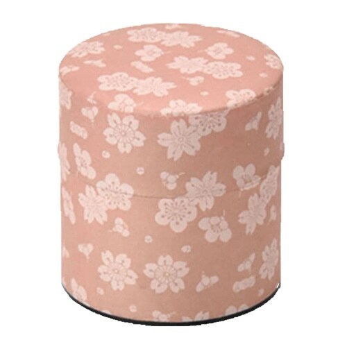 表面に紙を巻いてデザインした茶筒、ぽッ・かんシリーズの花唐草と桜梅文柄の茶筒です。 中蓋は本体と同じブリキ製です。 和風柄で暖かみのあるカラーリングの茶筒です。 |