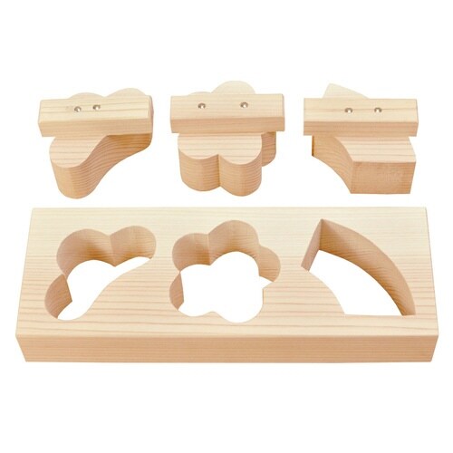 松、梅、末広の形のおにぎりができる抜型です。 檜を使用しています。 無塗装です。 一度に3種類のおにぎりができます。 |