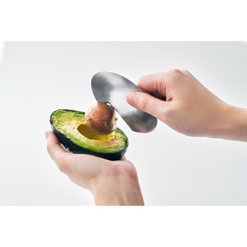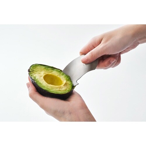 小さい刃で、するりとむけるアボカドカッターです。 これひとつで皮に切れ込みを入れ、種を除き、スプーン状の部分で実を外せます。 しっかりと握りやすい形状で、柑橘類の皮をむくのにも使えます。 |