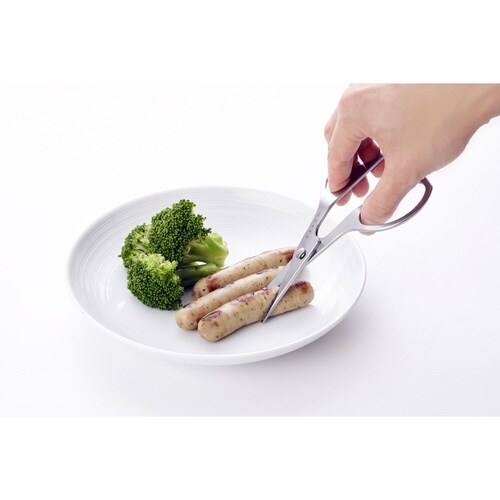 スタイリッシュなデザインが目を引くキッチンバサミです。 角度をもたせた形状なので、器の中の料理も楽に切ることができます。 安全に持ち歩けるケース付きです。 |