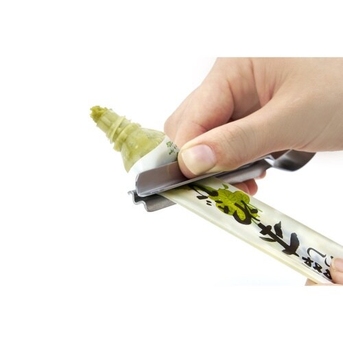 挟んでスライドするだけで、ムダなく最後までしぼり出せるトングです。 しっかりとかみ合うこだわりの形状です。 滑りにくく、握りやすさにもこだわったグリップです。 |