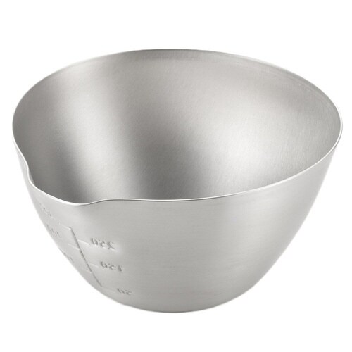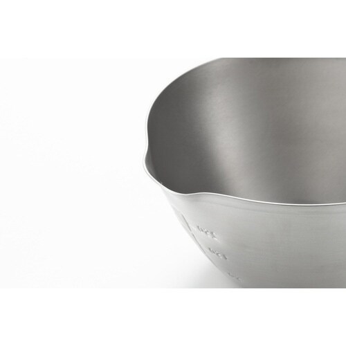 流し入れやすく液だれしにくい、ワイドな注ぎ口が特徴的です。 調理中でも分量が見やすい目盛りがついています。 スッキリ注げるしずく型の調理ボウルです。 丈夫で錆びにくい18−8ステンレス素材です。 |