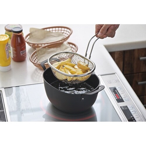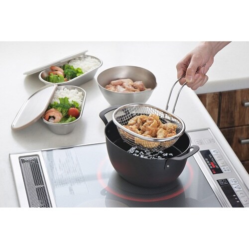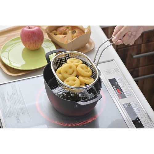 湯切れ、油切りのよいメッシュタイプの揚げザルです。 深みがあるので唐揚げやポテトを一気にすくうことができ、おいしさのタイミングを逃しません。 |