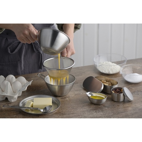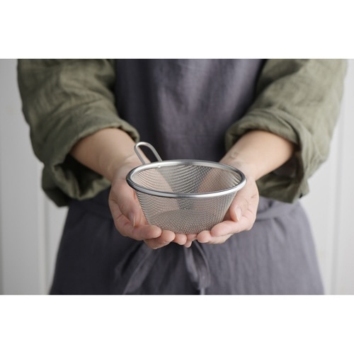 水切りやお菓子作りに使える深型のストレーナーです。 andシリーズの手付きボウルにフィットするサイズです。 揚げ物の油切りにも使用できます。 取っ手付きで水切りや油切りの際に便利です。 |