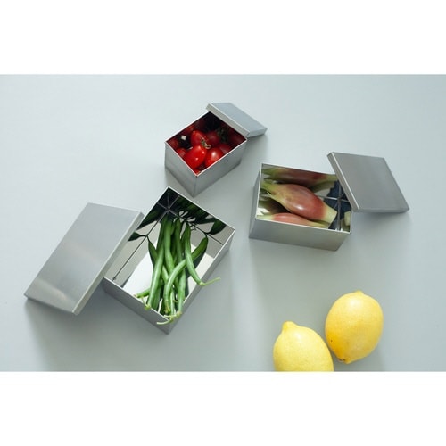 熱伝導に優れたステンレス製の角型保存容器です。 ステンレス製なので食材を直接入れることができ、冷蔵庫保存に最適です。 フルーツや薬味、少し余ったおかずの保存にも使いやすいサイズです。 |