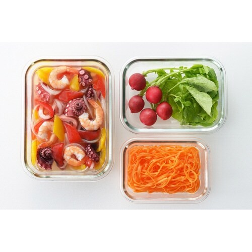 食材の冷凍からオーブンの調理までこなす耐熱ガラス製の保存容器です。 ニオイ移りや色移りがしにくいガラス製は、汚れも落ちやすく清潔に使えます。 本体が透明なので、フタを開けずに中身の確認ができ便利です。 |