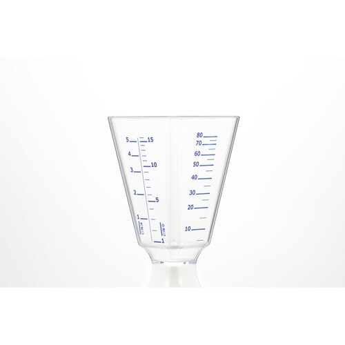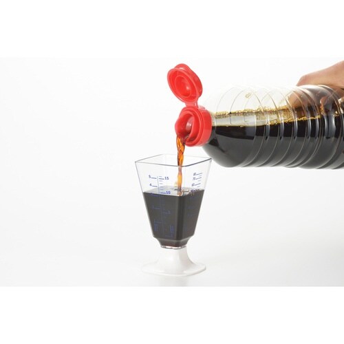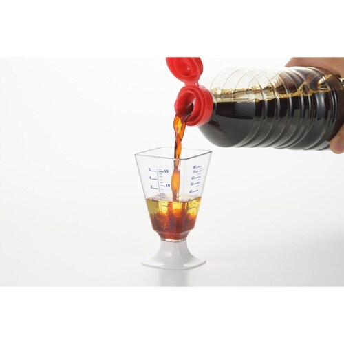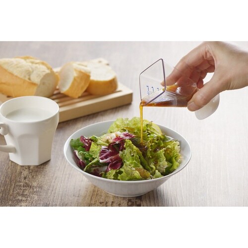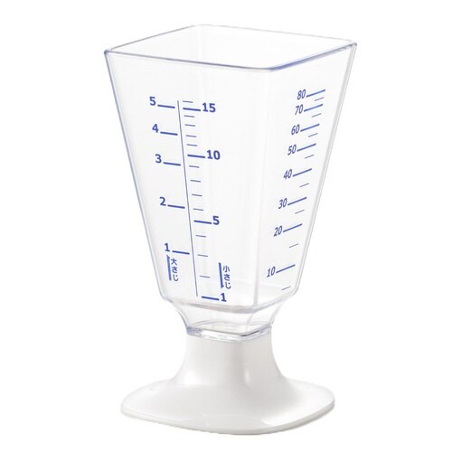 80mlまで量れる、大さじ・小さじの計量カップです。 置いたまま量れるので、両手が使えます。 青文字の目盛りは、色の濃い調味料を入れても、見やすくなっています。 |
