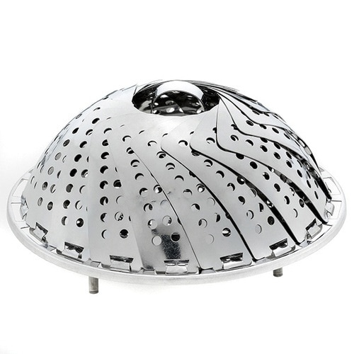お手持ちの鍋に入れて使う蒸し器です。 18から28cmのお鍋に使える、ジャンボサイズの蒸し器です。 中央の持ち手は取り外せるので、お皿ごと乗せることも可能です。 |