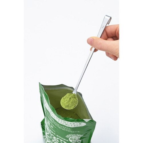 青汁、ココア、パウダーミルクなど、チャック付きパウダーを袋からすくって取り分けるのに便利なロングタイプのスプーンです。 持ち手の端がフック形状で、器や袋からすべり落ちにくいです。 |