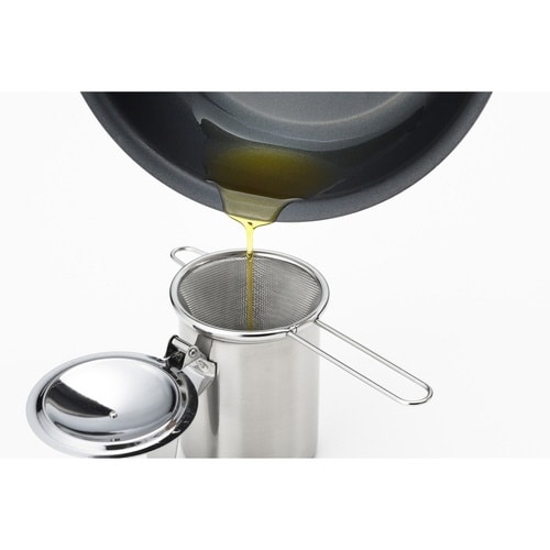 「料理のいろは・ミニオイルポット」に重ねて使う油こし用のアミです。 二重メッシュで細かい揚げカスもしっかり濾せます。 耐久性・耐食性に優れた18−8ステンレス製です。 |