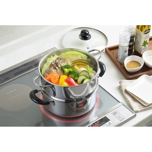 錆びにくく、耐久性に優れたステンレス製の二段蒸し器です。 直火、IHクッキングヒーターのどちらにも対応しています。 ちょっとした蒸しものが作れる便利な20cmサイズです。 |