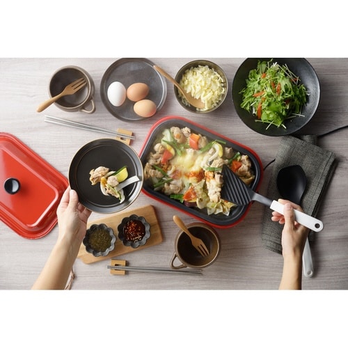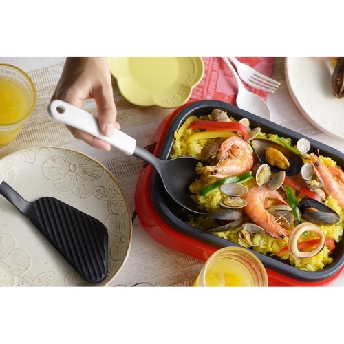 ホットプレート料理をより便利で手軽に調理できる「MOTTE(モッテ)」シリーズの炒め&盛り付けスプーンです。 混ぜる・炒める・盛り付けがこれ1本でできる万能なキッチンツールです。 |