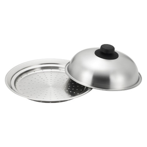 手持ちのフライパンに乗せるだけで、蒸し器になる蒸しプレートです。 内径20から22cmのフライパンに対応しています。 蓋つきで蒸気がたっぷり発生するのでしっかりスチームできます。 |