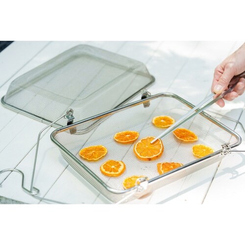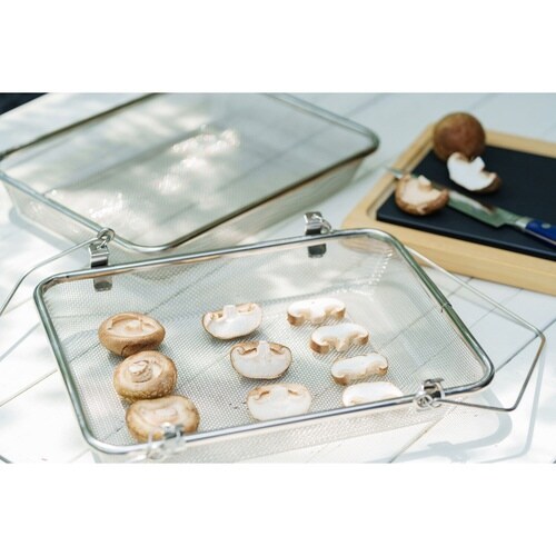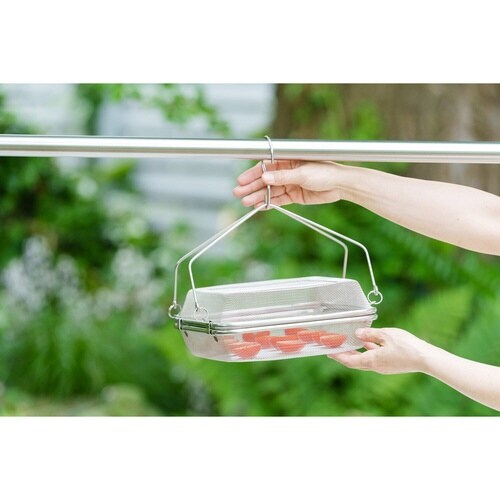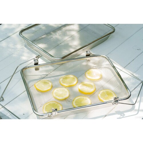 燕三条産のステンレス製の干しカゴです。 食材が並べやすく、収納場所にも収まりやすい角型です。 ステンレス製なので、変形や匂い移りがしにくいです。 サビにくいため簡単に水洗いできるので清潔に保てます。 |