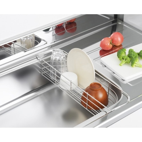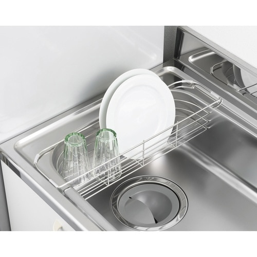コンパクトキッチンでも使えるスリムタイプの水切りです。 シンクに掛けて水切りができるので、作業スペースを広く使えます。 食器や調理器具のちょっとした水切りにピッタリです。 |
