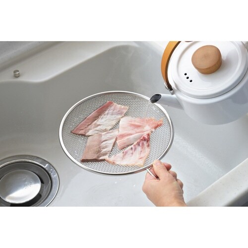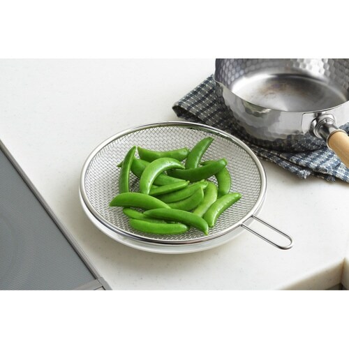 毎日の調理に万能な取っ手付きの平ざるです。 ステンレス製なので丈夫でサビにくく、長く使うことができます。 油抜きや水切り、魚の湯引きなど幅広い用途で使えます。 そのまま食卓にも出せるシンプルさです。 |